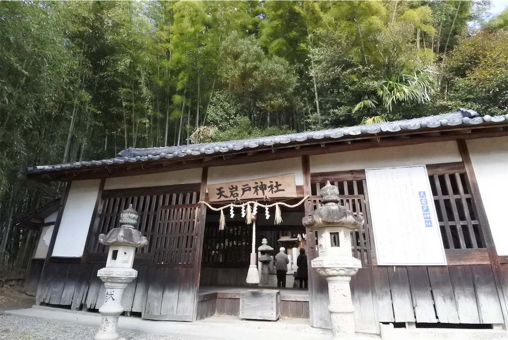ここには天照大御神が祀られ、天岩戸伝説の巨石が残る。北の「天香久山神社」から山頂の「国常立神社」を通り、南の「天岩戸神社」まで一直線で結ぶ。このルートを辿ってこそ、天香久山の登拝は完成する。