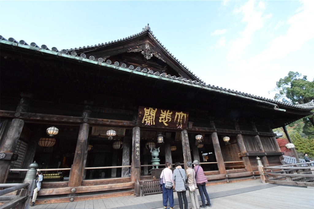 日が落ちたあとの本堂はまた別の表情を見せる。黒々とした屋根が空の藍色に溶け、内部の灯りだけが格子の向こうから漏れ出す。観音の気配をそっと示す灯火のようで、昼間よりもむしろ“祈りの場所”としての輪郭がくっきり立ち上がる。