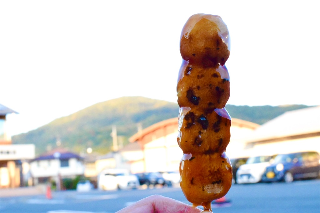 吉方庵では焼きたての「みたらし団子」を店舗の前で販売することもある。