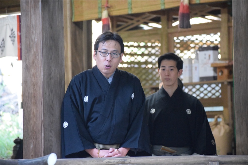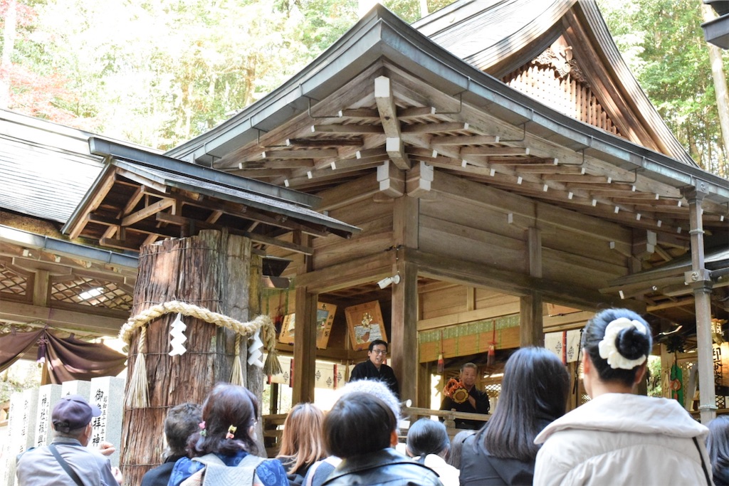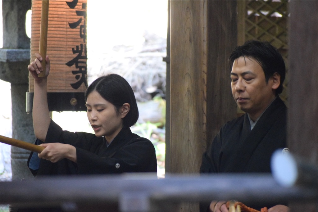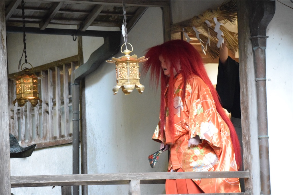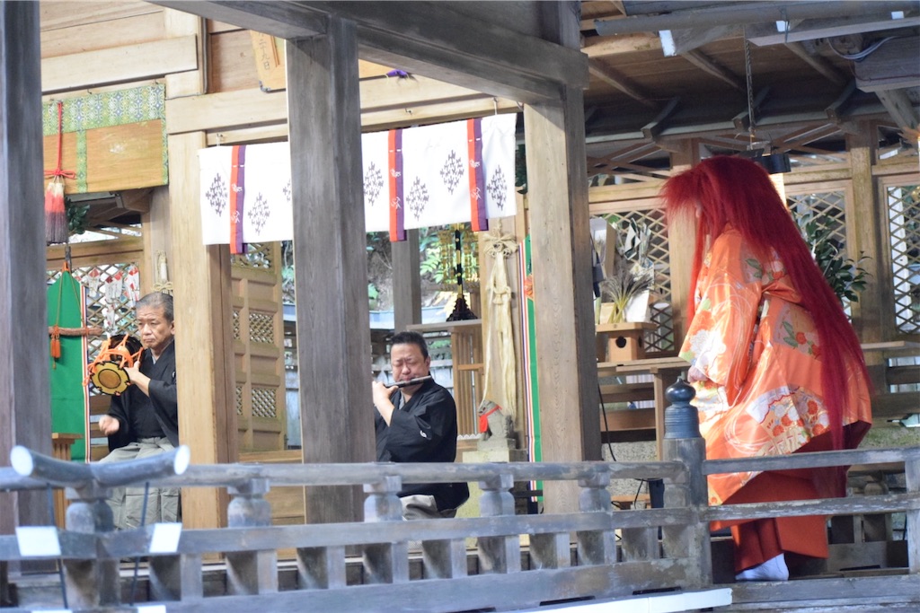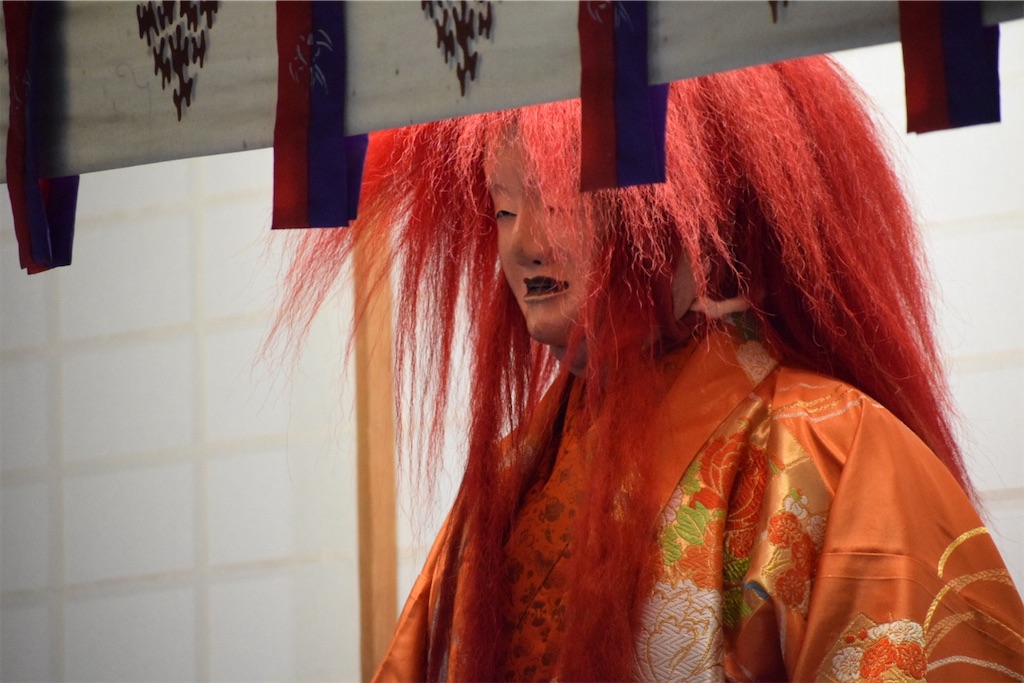 そのため、一歩踏み出すだけで動作が静かになり、慎重になる。その姿を見て、初めて「能面の無表情とは、役者が表情を消すためではなく、世界の見え方を変えるためのものだったのか」と感じた。能面をつけた子どもたちの歩みはゆっくりで、そのぎこちなささえも、この拝殿の空気には不思議と馴染んでいた。