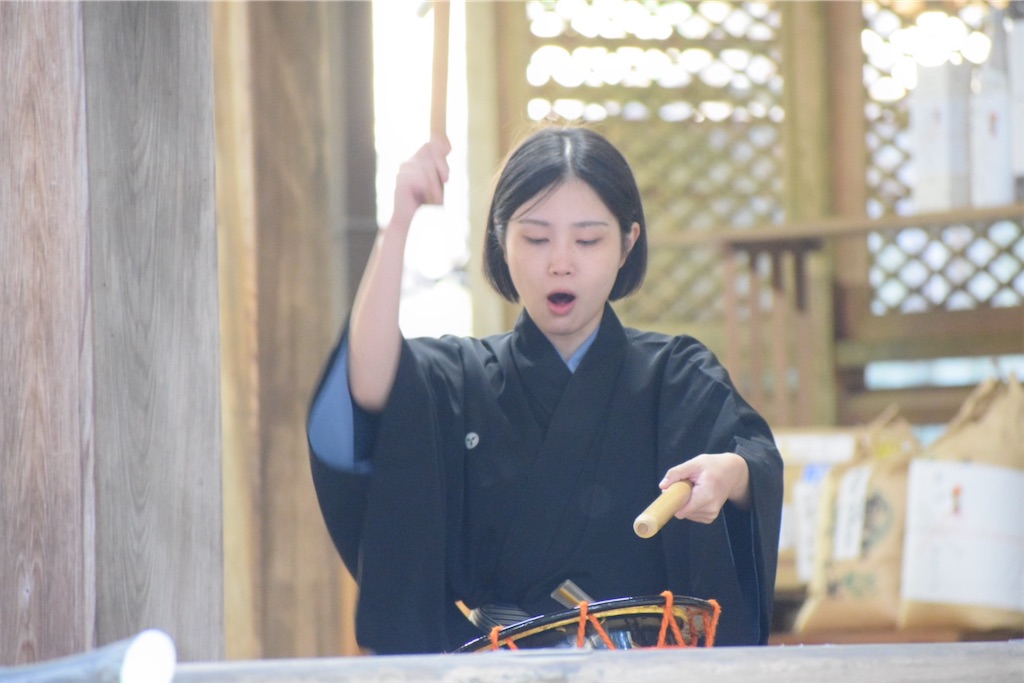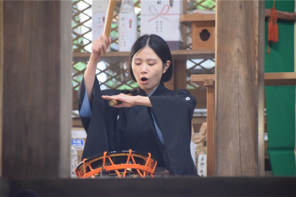 鼓の一打は鋭いのに、乾ききらず、どこか湿り気を含んでいた。刺さるというよりは、身体の奥へ沈んでいくような響き方で、余韻だけがしばらく漂い続けた。
