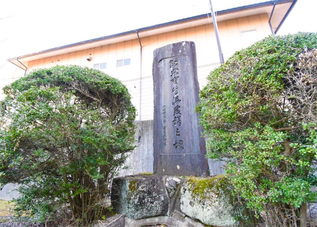 外山座が拠点とした宗像神社には、今も「能楽宝生流発祥の地」の石碑が建つ。