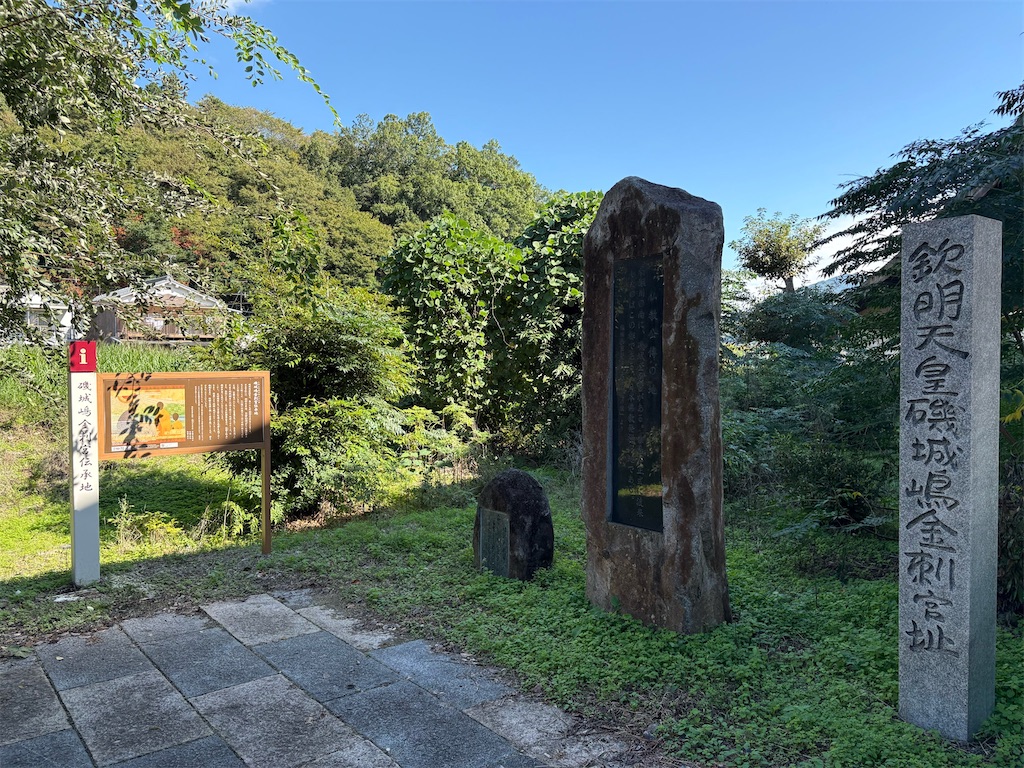この宮を営んだとされるのは第29代・欽明天皇(509–571)。継体天皇の皇子で、『日本書紀』は西暦552年、百済の聖明王から金銅の釈迦像や経論が献じられ、ここから日本の仏教公伝が始まった。政治と信仰がはじめて公的に交わる、その転換点としてこの地は記憶されている。